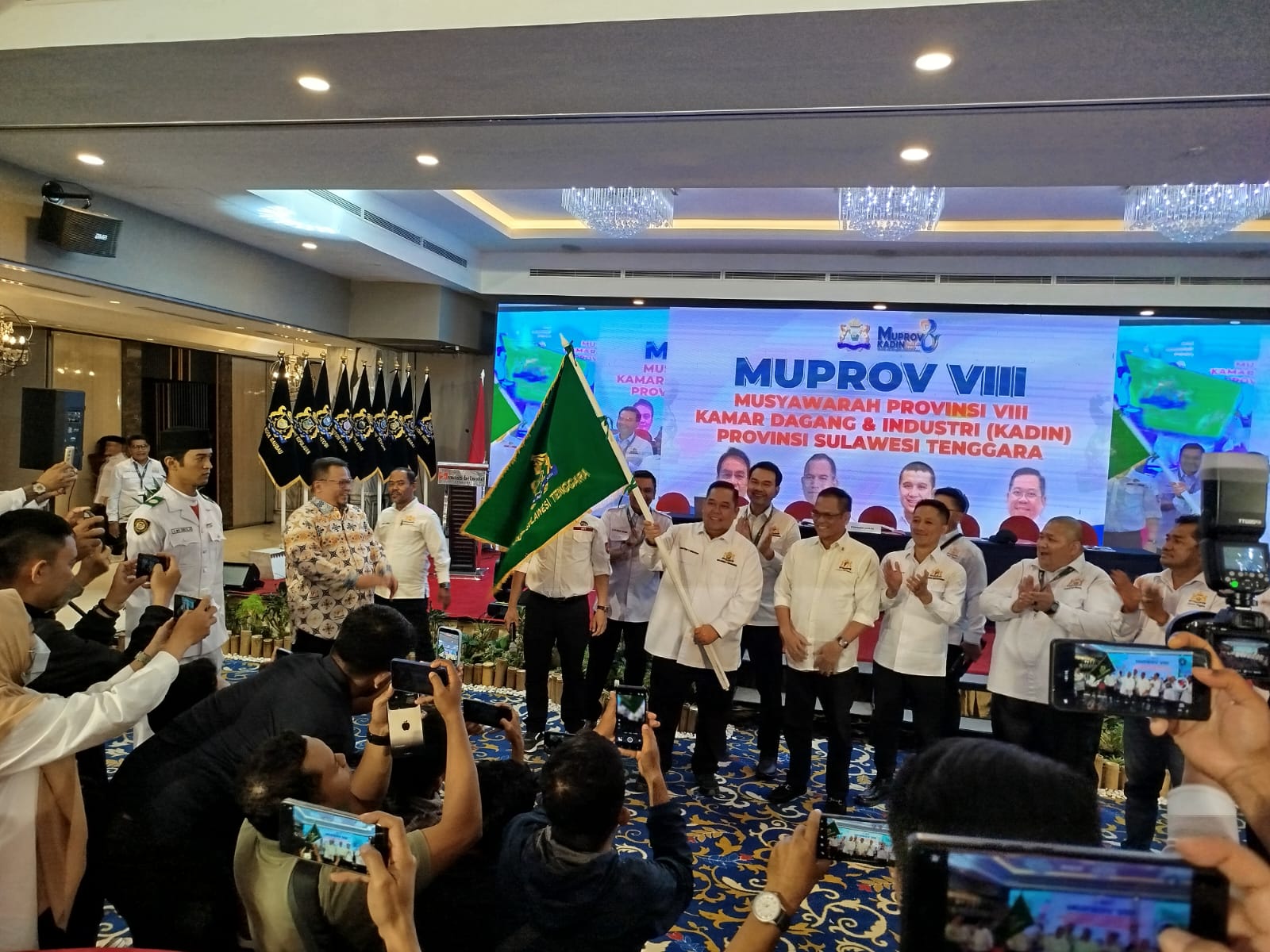 Setelah melalui proses pelaksanaan Muprov VIII, Anton Timbang ditetapkan sebagai Ketua Umum Kadin Sultra terpilih dan menerima bendera pataka sebagai tanda resmi menahkodai Kadin Sultra lima tahun kedepan.